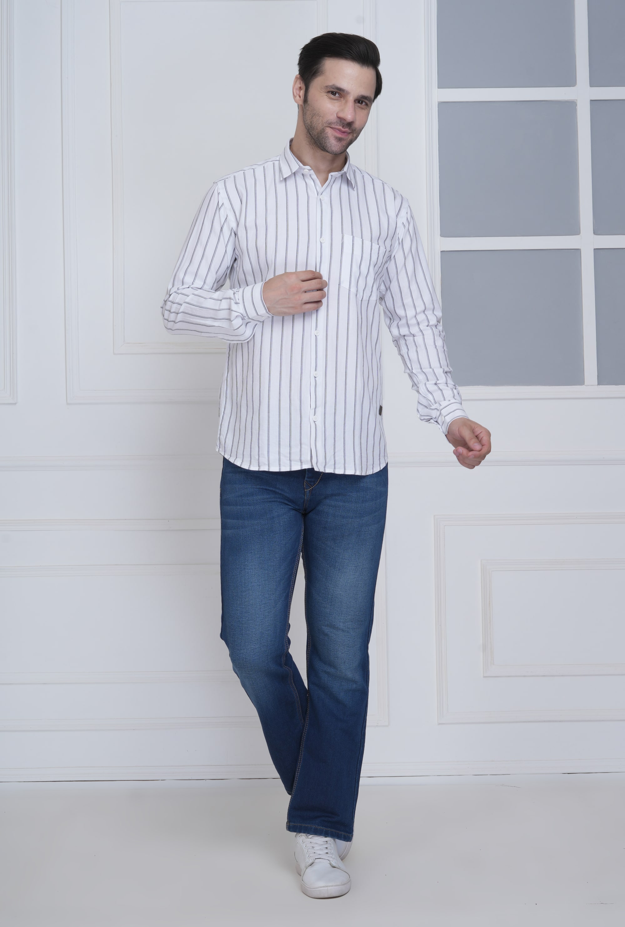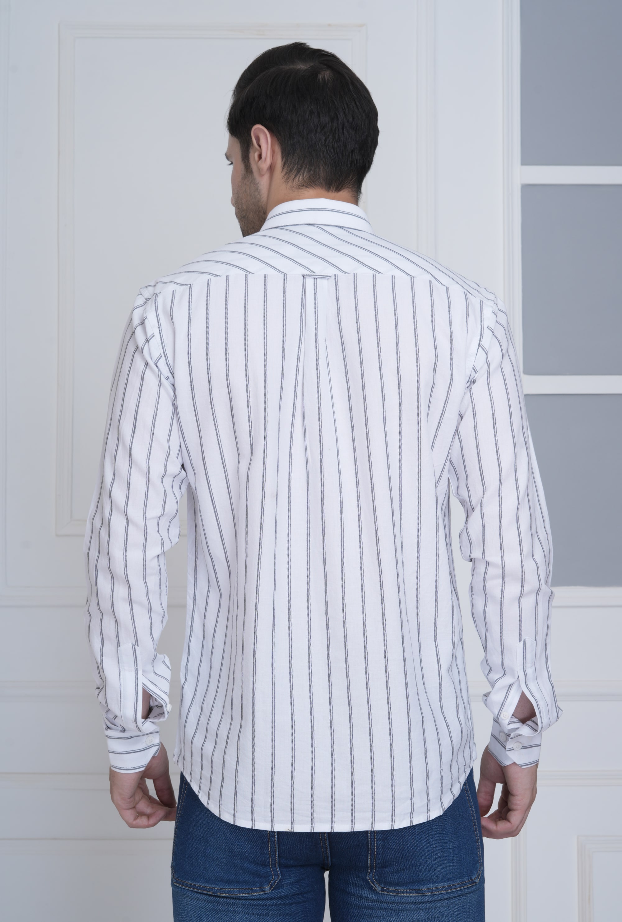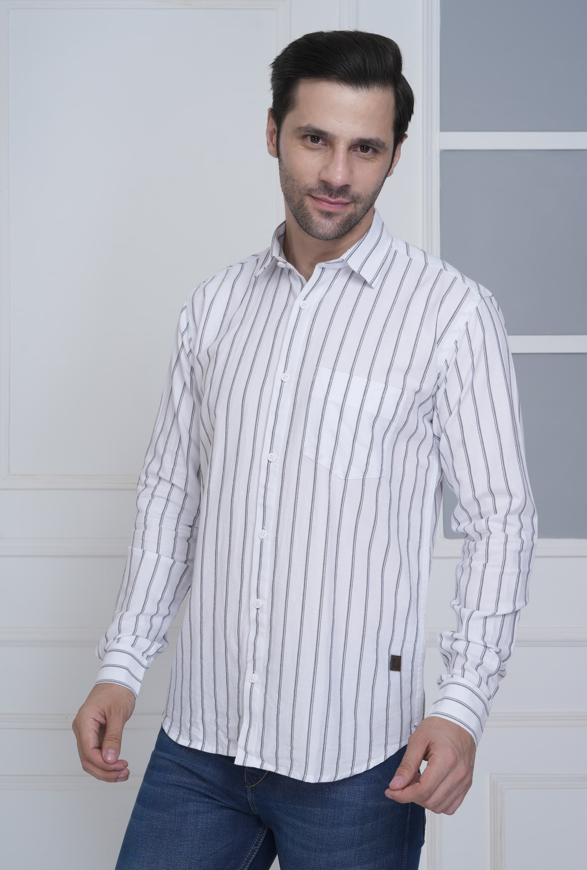 QUIDDICT Men’s White Cotton Stripped Shirt